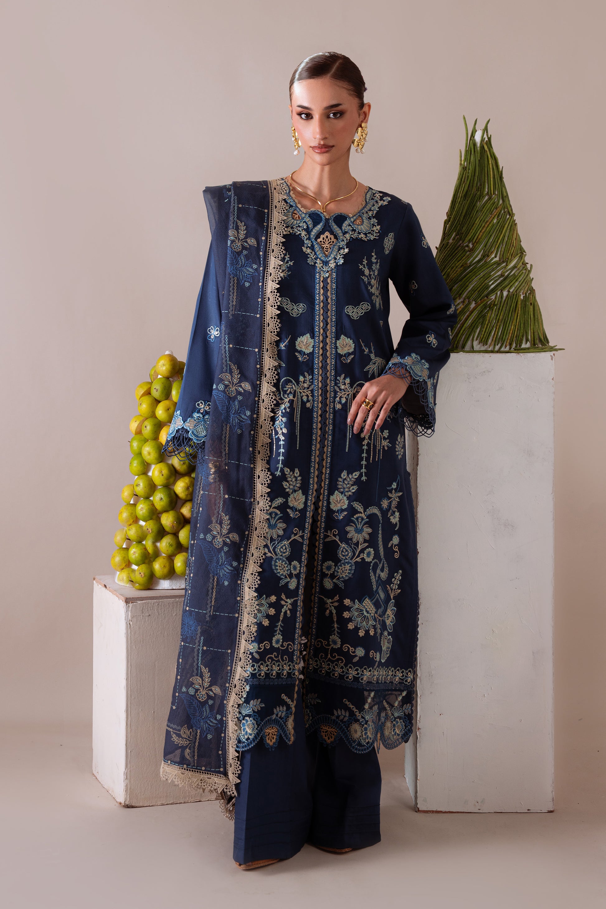 - Embroidered Back Daman Border