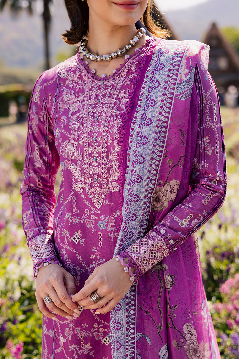 - Chikankari Embroidered Printed Sleeves
